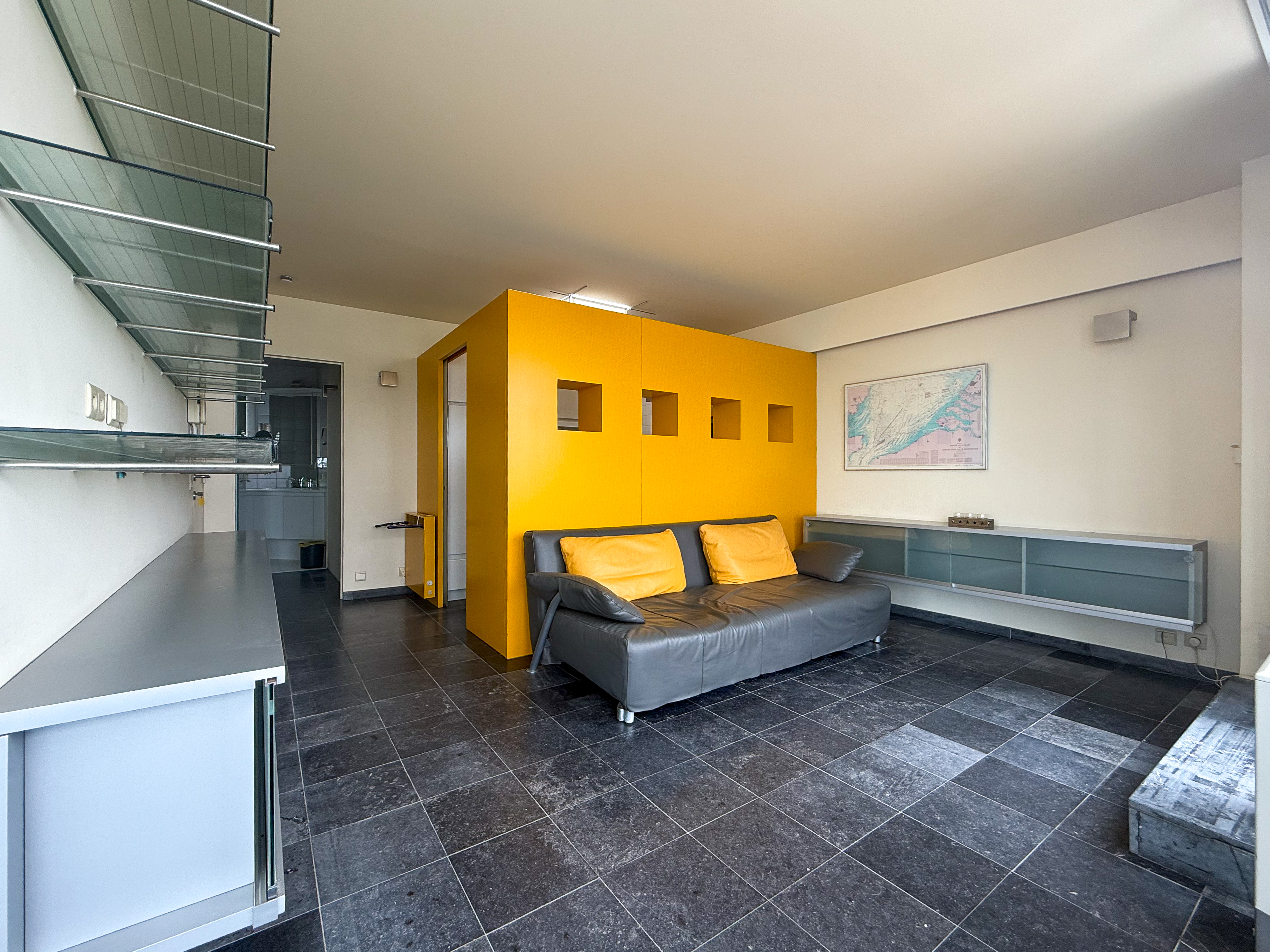 Ontdek dit penthouse op de zeedijk van Sint-Idesbald, op slechts 400 m van het centrum. Gelegen op de 7de verdieping geniet je hier van een panoramisch zeezicht vanuit de brede woonkamer en vanop het ruime terras dat langs drie zijden van het appartement loopt. De woonkamer met salon en eetgedeelte sluit aan op een aparte keuken, voorzien van alles op vlot te koken. Achteraan vind je de slaapkamer met toegang tot het terras. Naast de kamer bevindt zich de badkamer met douche. Een ideale plek voor wie wil verblijven op een uitzonderlijke locatie pal aan het strand.